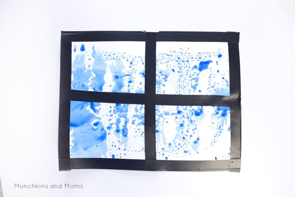 - Finally, you’re going to create the window frame with your electrical tape. Voila! You have your very own rainy window!